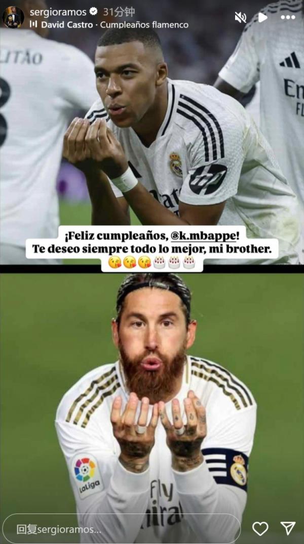 12月20日訊 今日是姆巴佩26歲生日,拉莫斯也在個人社媒曬照為其送上生日祝福。姆巴佩此前曾在進球后模仿拉莫斯慶祝動作致敬前輩,拉莫斯曬出兩人同款慶祝照片