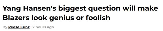開拓者媒體Rip City Project認(rèn)為從楊瀚森的零星亮眼表現(xiàn)來看,海金的樂觀并非不能理解,但這份期待建立在一個(gè)或許永遠(yuǎn)無(wú)法實(shí)現(xiàn)的理想假設(shè)之上,也讓開拓者的這次選秀策略暗藏巨大風(fēng)險(xiǎn)。