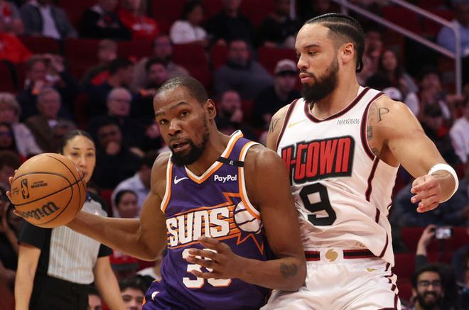 37歲的杜蘭特在加盟火箭隊(duì)的首個(gè)賽季里,依舊保持著頂級(jí)的“三級(jí)別得分手”水準(zhǔn)。他出戰(zhàn)的比賽中場均貢獻(xiàn)26.5分、5.4個(gè)籃板和4.5次助攻,三項(xiàng)命中率分別達(dá)到51.4%、40.8%和88.6%。
